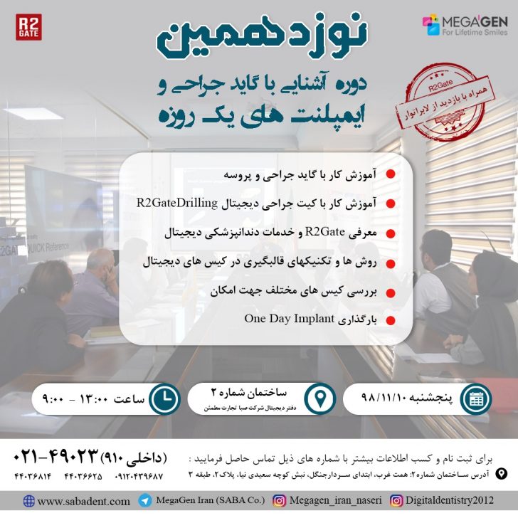 ثبت نام نوزدهمین دوره آشنایی با ایمپلنت یکروزه، سرجیکال گاید و خدمات دیجیتال لابراتوار R2gate همراه با بازدید از لابراتوار دیجیتال R2gate از امروز آغاز شد.